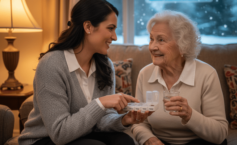 Helping with daily tasks like bathing, dressing, and medication reminders.